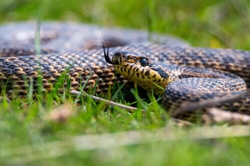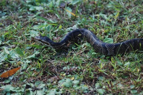 Most snakes are non-venomous. Although their bite may cause pain it is not dangerous to humans or pets. There are venomous snakes whose bite can be a danger to humans. It is often difficult to differentiate between the species. Don’t handle a snake if you aren’t sure.